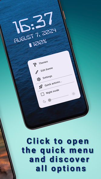 ⁃ Sie können den Uhrenhintergrund an Ihre Stimmung anpassen. Legen Sie einen monochrom, gradienten Hintergrund oder wählen Sie ein Hintergrundbild aus Ihrer Galerie.
