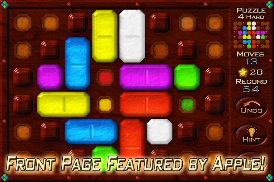 Es stehen Hunderte von handgefertigten Rätseln mit drei Schwierigkeitsgraden zur Auswahl. Und da das Spiel Ihre persönlichen besten Moves verfolgt und Sie für jedes Puzzle Silber- und Goldstars verdienen können, haben Sie immer einen neuen Rekord zu beschlagen und goldene Sterne zum Sammeln! Wenn Sie stecken bleiben, können Sie jederzeit einen Hinweis verlangen oder Ihr Smartphone/Tablet das Rätsel für Sie lösen lassen!