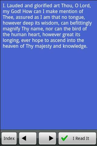 Un gran plan de lectura para ayudarlo cada mañana y noche. Incluye historial de lectura diario, búsqueda, navegación índice, control de color/fuente, integración de correo electrónico. Muchos idiomas incluidos. Creado por Bahaivink.