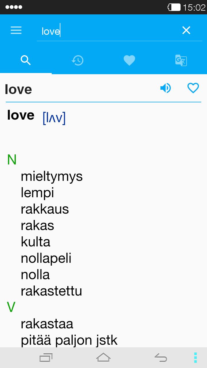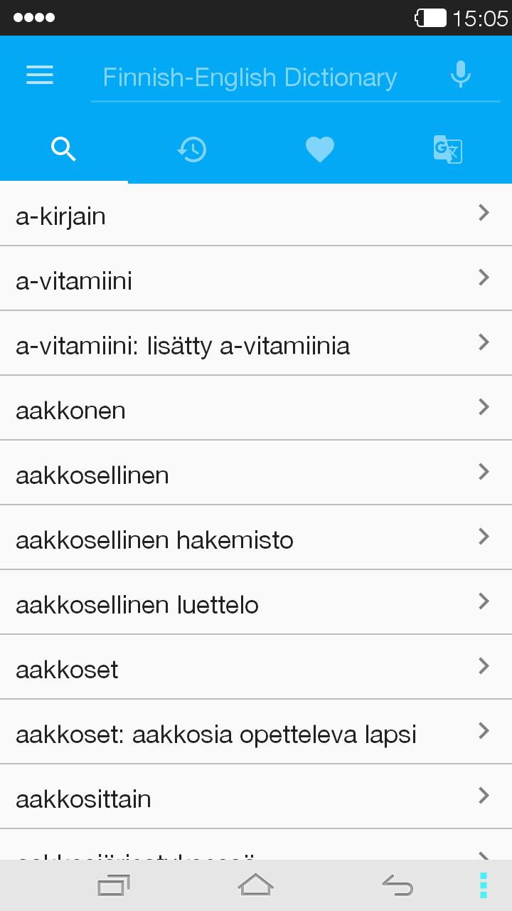English <-> DictDroid finlandés es "Diccionario fuera de línea" para Android