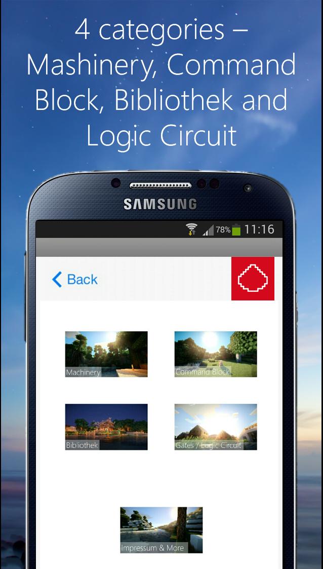 En la aplicación Myredstone puede encontrar muchas instrucciones detalladas con imágenes de muchas construcciones de Redstone.