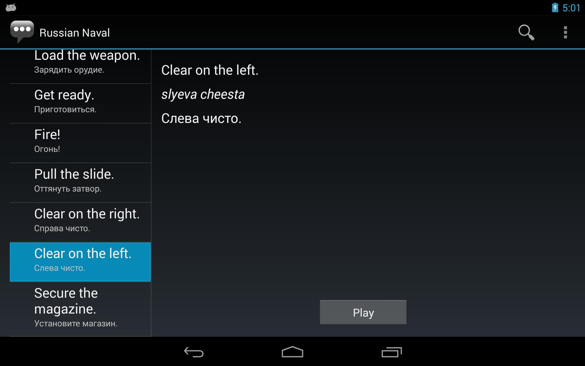• Nombre del paquete com.robtheis.android.phrasebook.ru.nv