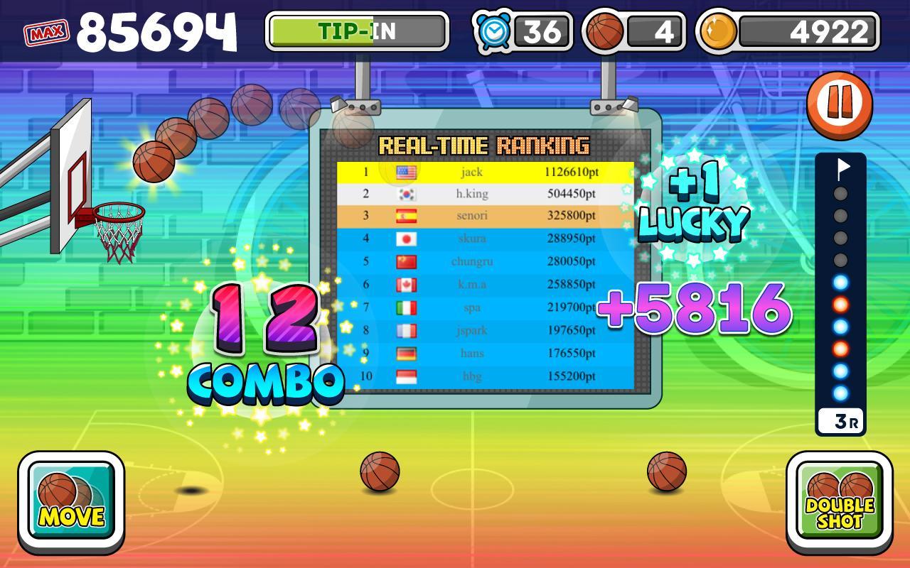 Se agregaron varios factores de juego como [ítem], [combo], [tip-in] y [rim en movimiento] para hacer que el juego sea más divertido.