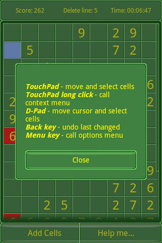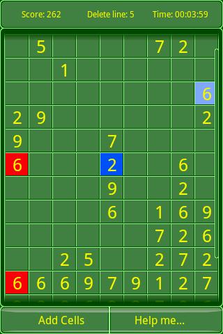 Puede despejar dos células vecinas con tales nubers (vertical u horizontal, no diagonalmente)