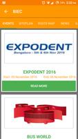 Certaines des principales expositions déjà organisées et prévues à BIEC sont IMtex, Excon, Bangalore Bio, India ITME, Bangalore IT.com, India Wood, IETF & IHF, Diemould, Expodent, Electronic India, International Commercial Vehicle Exo, ELCA, MDA, Automation industriel et cime