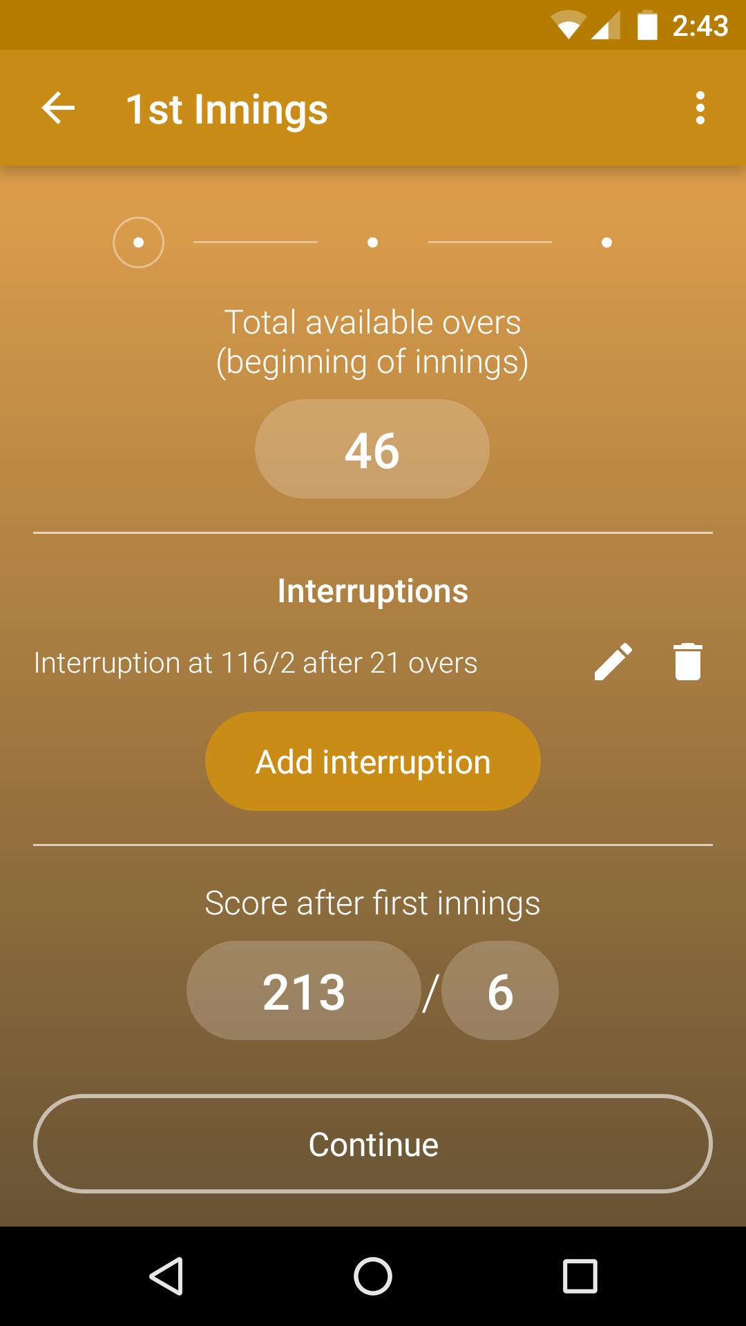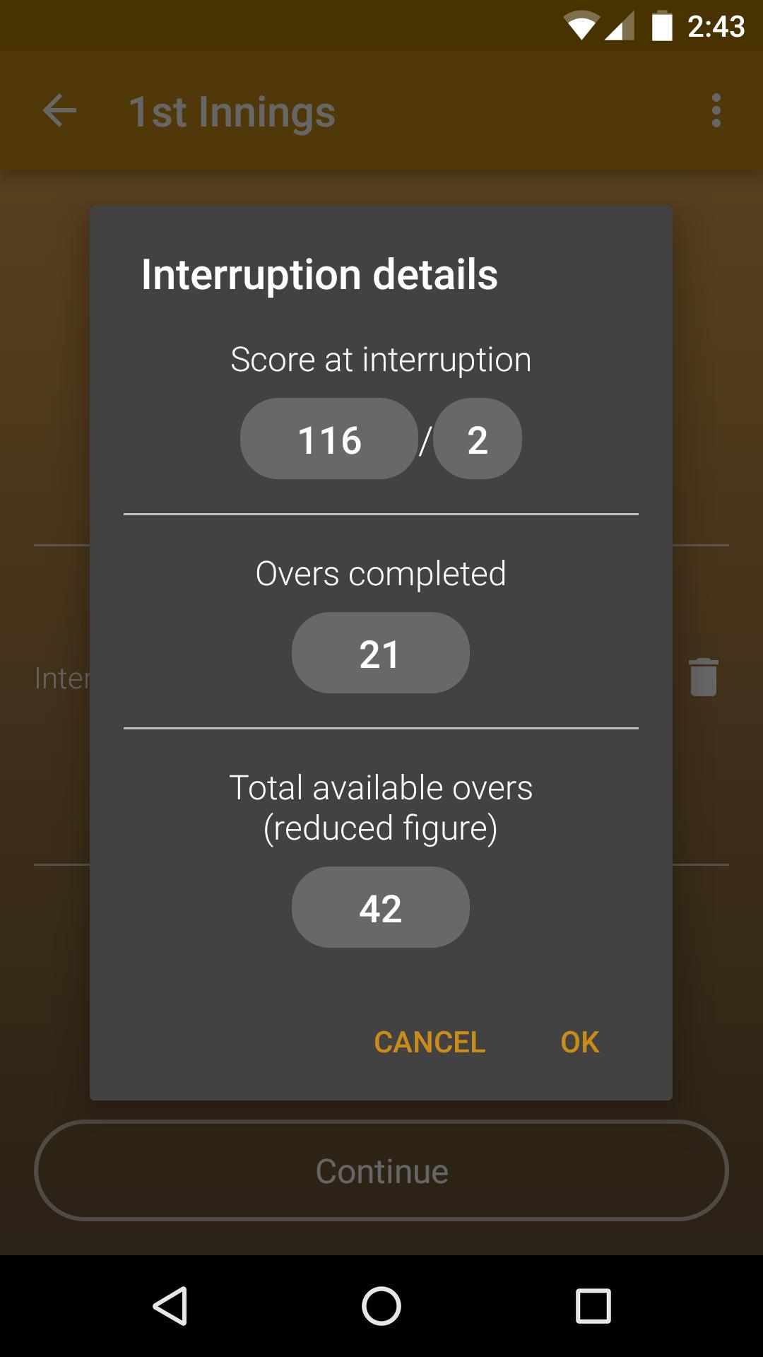 - Définissez le nombre total d'overs disponibles au début de chaque manche pour tenir compte des overs réduits avant le début du match, ainsi que des overs réduits entre les manches