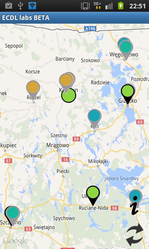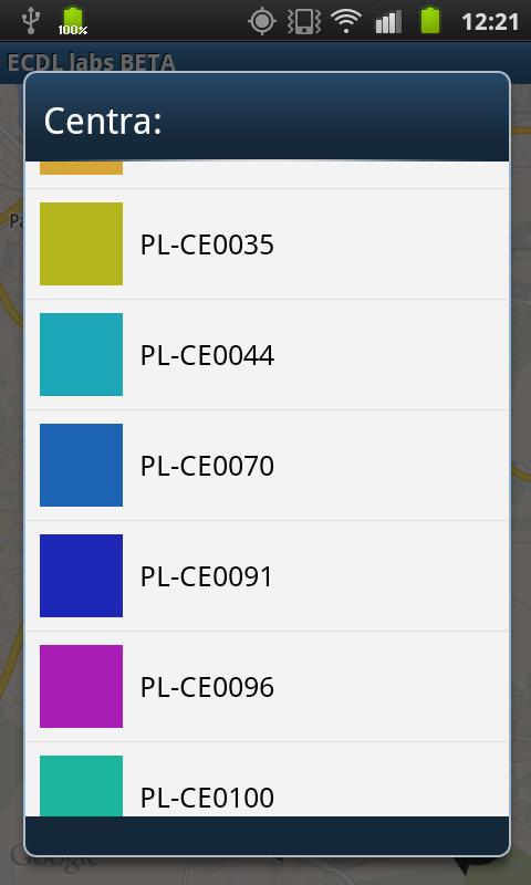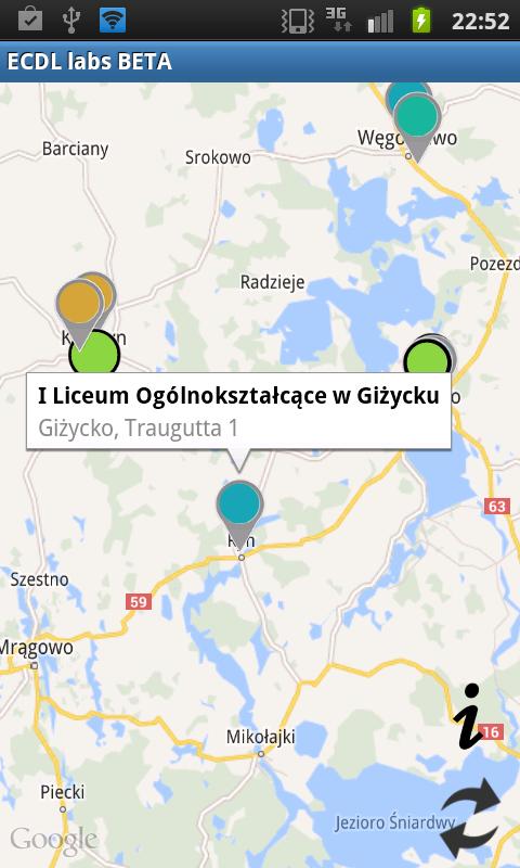 La demande présente des endroits où les examens ECDL ont lieu.