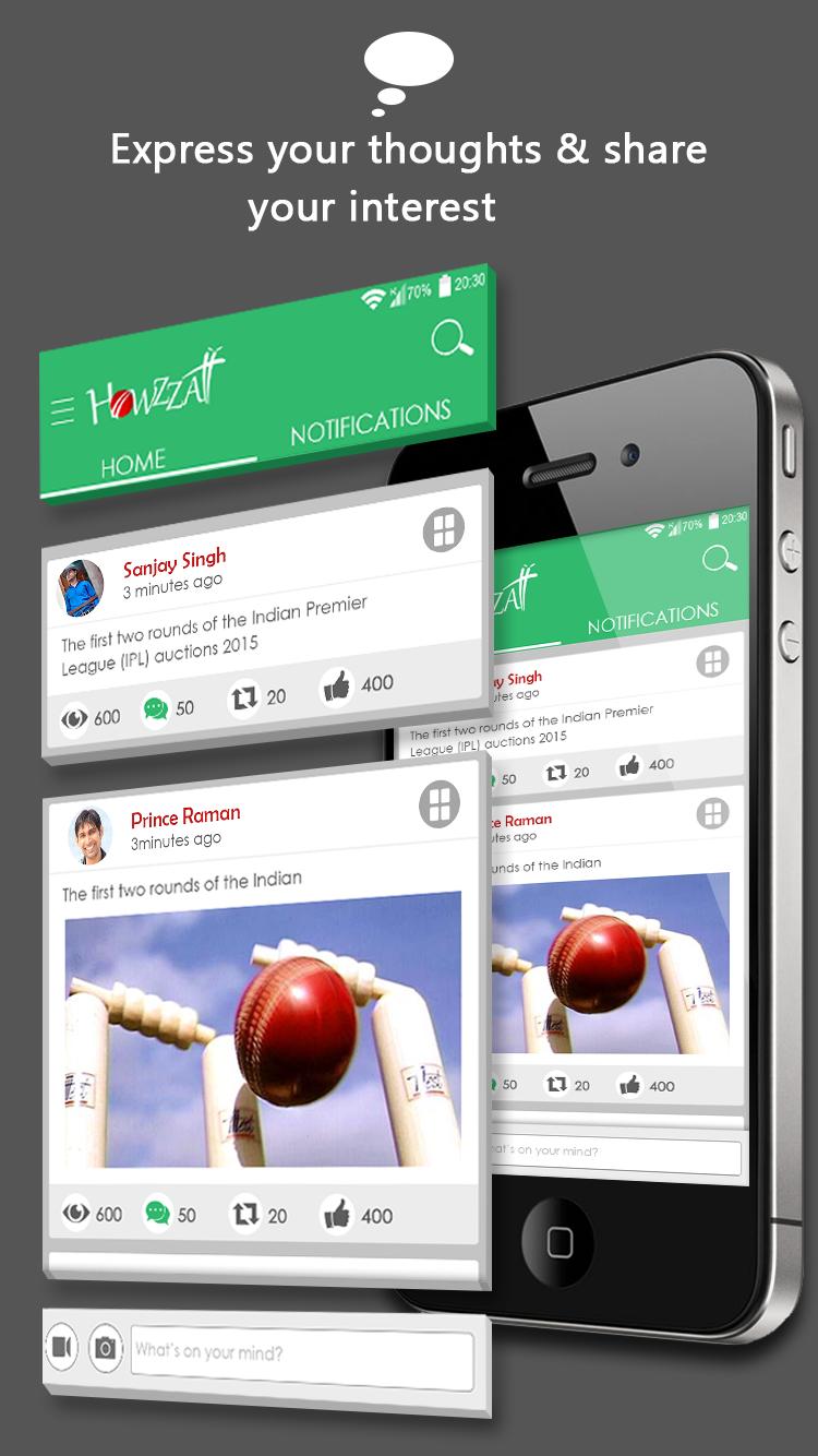 Être ombragé par le cricket est le rêve de chaque Indien. Et Howzzatt fait exactement cela. Il s'agit d'une plate-forme où les fans de cricket ont accès à chaque événement de cricket en direct dans lequel ils peuvent interagir avec d'autres fans de nombreuses façons. Les premiers temporisateurs pourraient devenir membres via Facebook ou Twitter. Ceux qui n'ont pas de comptes peuvent s'inscrire immédiatement dans l'application via quelques étapes simples.