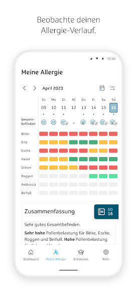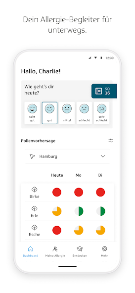 Les techniciens vous fournissent un soutien dans le traitement de votre allergie au pollen avec l'application d'allergie « TK-Husteblume ». La «fleur de toux Tk» est votre compagnon personnel à travers la saison des allergies. Par exemple, vous pouvez utiliser cette application pour voir quel pollen vole particulièrement lorsque, quels symptômes votre allergie déclenche, en savoir plus sur les temps de floraison et la réaction croisée, ou faire enregistrer et évaluer vos symptômes dans un journal des symptômes.