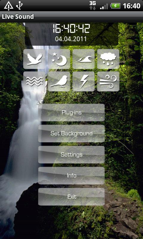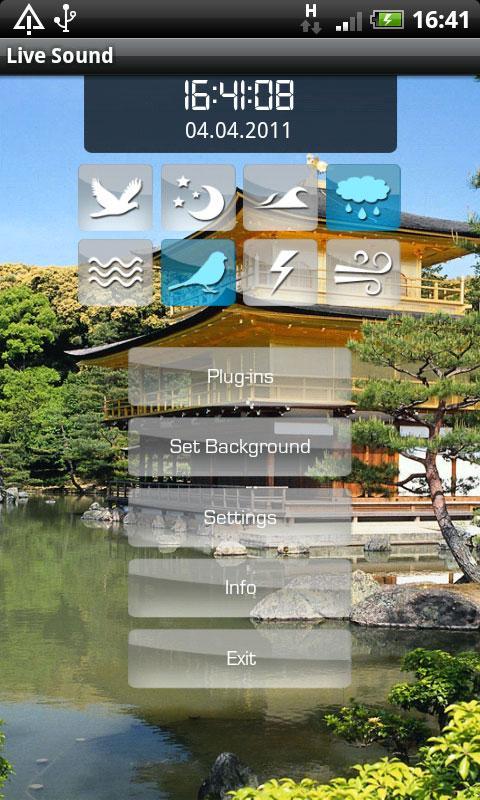 Maintenant, il comprend huit sons de la nature et huit peaux. Vous pouvez choisir ou mélanger des sons et commencer la relaxation. Vous pouvez configurer une minuterie de sommeil spéciale. Cette minuterie définit le temps après que la musique s'arrête et que l'application se ferme automatiquement.