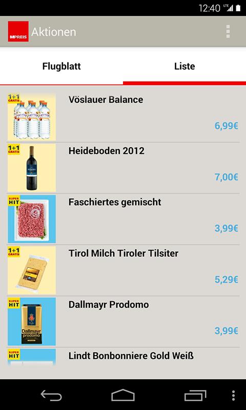 • Actions: afficher les offres actuelles et les emmener dans la liste de courses, partager avec des amis, accéder à la brochure actuelle