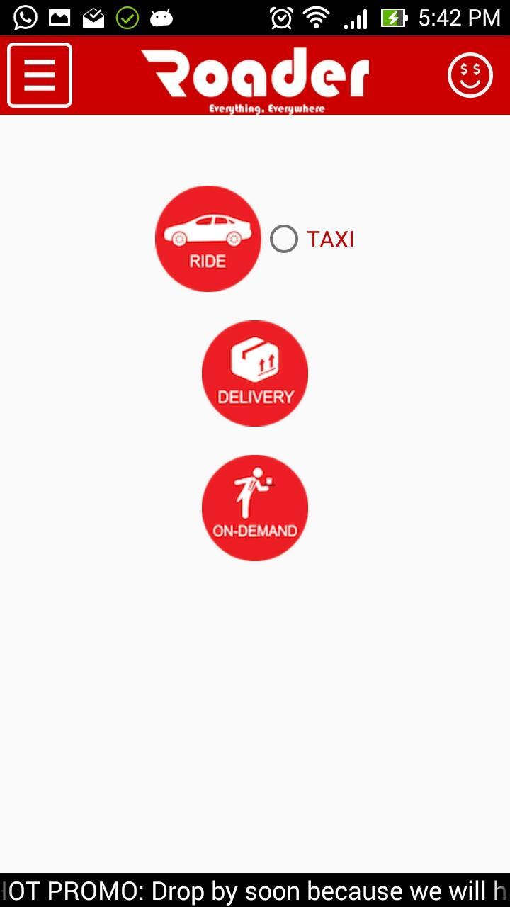 Roader est une application utilitaire totale qui offrira des services tels que le transport, la livraison et à la demande. Nous pensons que notre nouvelle marque et les types de services que nous offrons reflètent qui nous sommes, une application axée sur nos clients et passionnée par nos gens et nos services. Nous élargissons nos services non seulement à des trajets en taxi et en voiture, mais aussi des services de livraison et de demande, nous espérons vous offrir des options plus vastes qui amélioreront encore la commodité de faire vos besoins quotidiens.