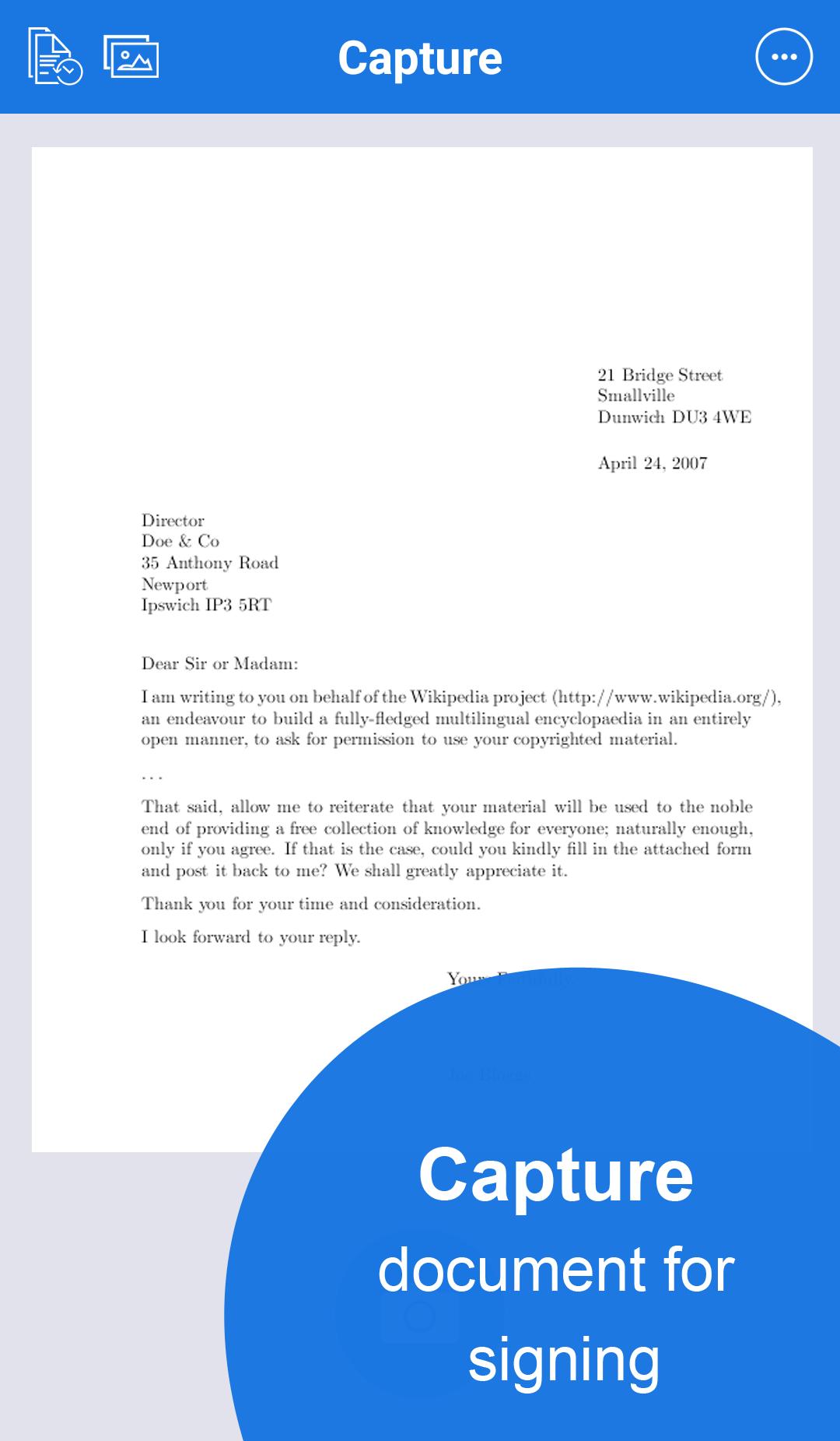 1. Capturez simplement le document à l'aide de la caméra de l'appareil
