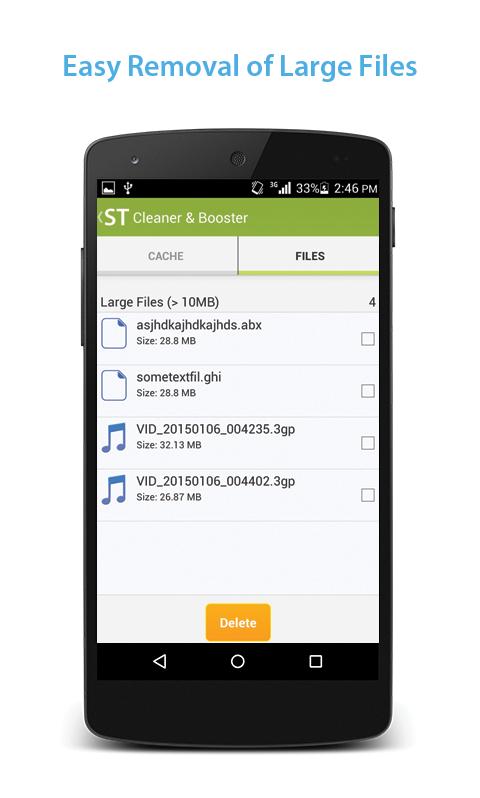 En outre, la nouvelle version de ST Cleaner & Booster est livrée avec une fonctionnalité pour supprimer les fichiers volumineux en un clin d'œil! Cela peut vous aider à trouver et à supprimer les fichiers indésirables mangeant l'espace du téléphone et le rendre extrêmement lent.