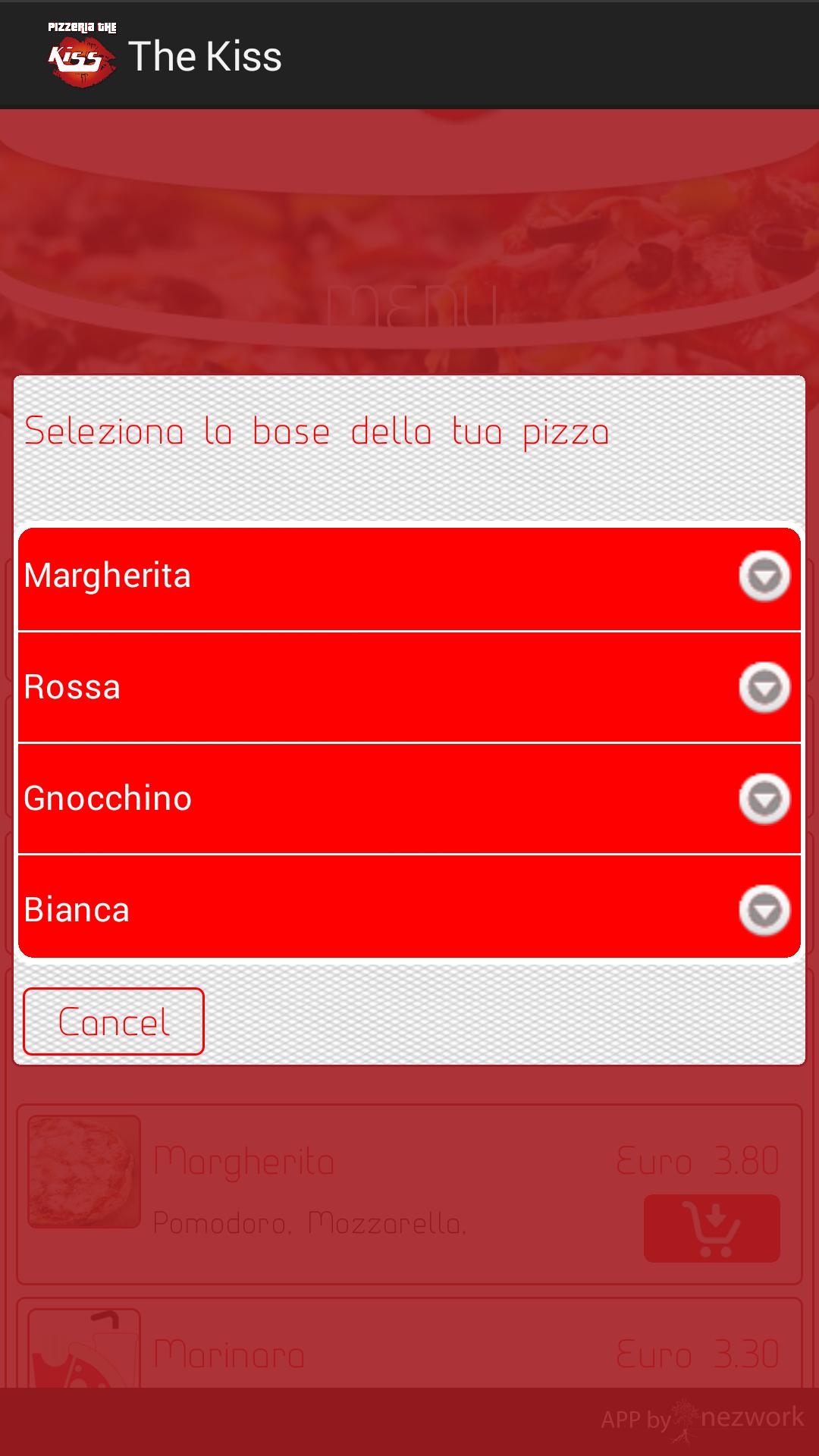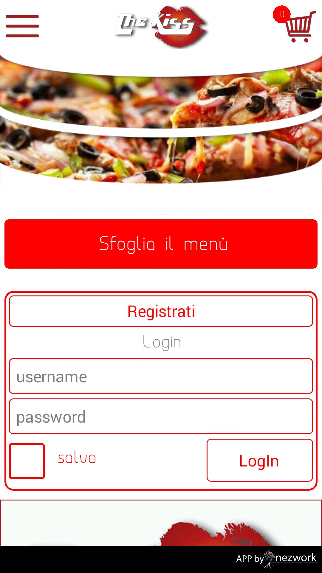 Commandez le déjeuner et le dîner à travers la pizzeria de l'application The Kiss !