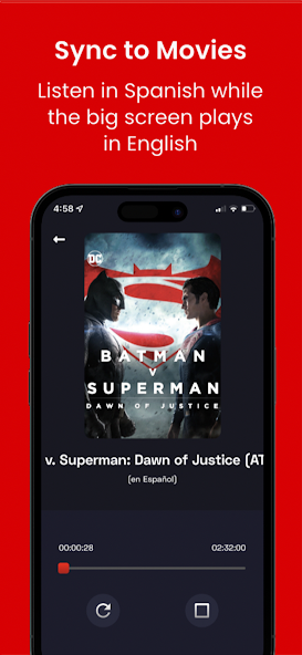 Rejoignez le mouvement! L'application TheaterEars vous permet de regarder de nouveaux films de sortie au cinéma en espagnol. Chargez simplement l'application Sélectionnez votre film, Showtime et Language pour obtenir la piste de film sur votre téléphone. Lorsque vous arrivez au cinéma, TheaterEars se synchroniseront avec le film à travers le microphone de votre téléphone, puis joueront la bande originale du film dans votre langue choisie. Pour des millions, Cine en Español, est maintenant à portée de main sans les barrières de la langue.
