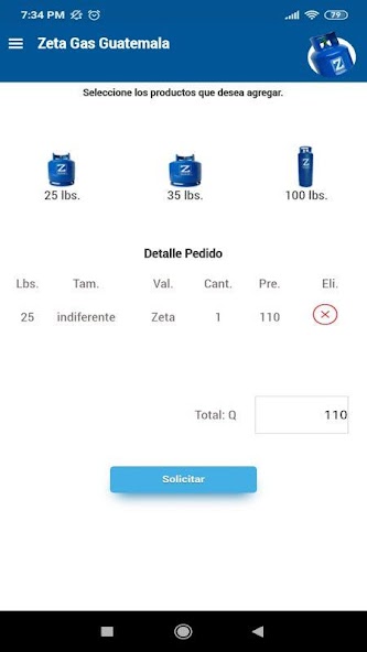 Application pour commander du gaz et communiquer avec Zeta Gas Guatemala
