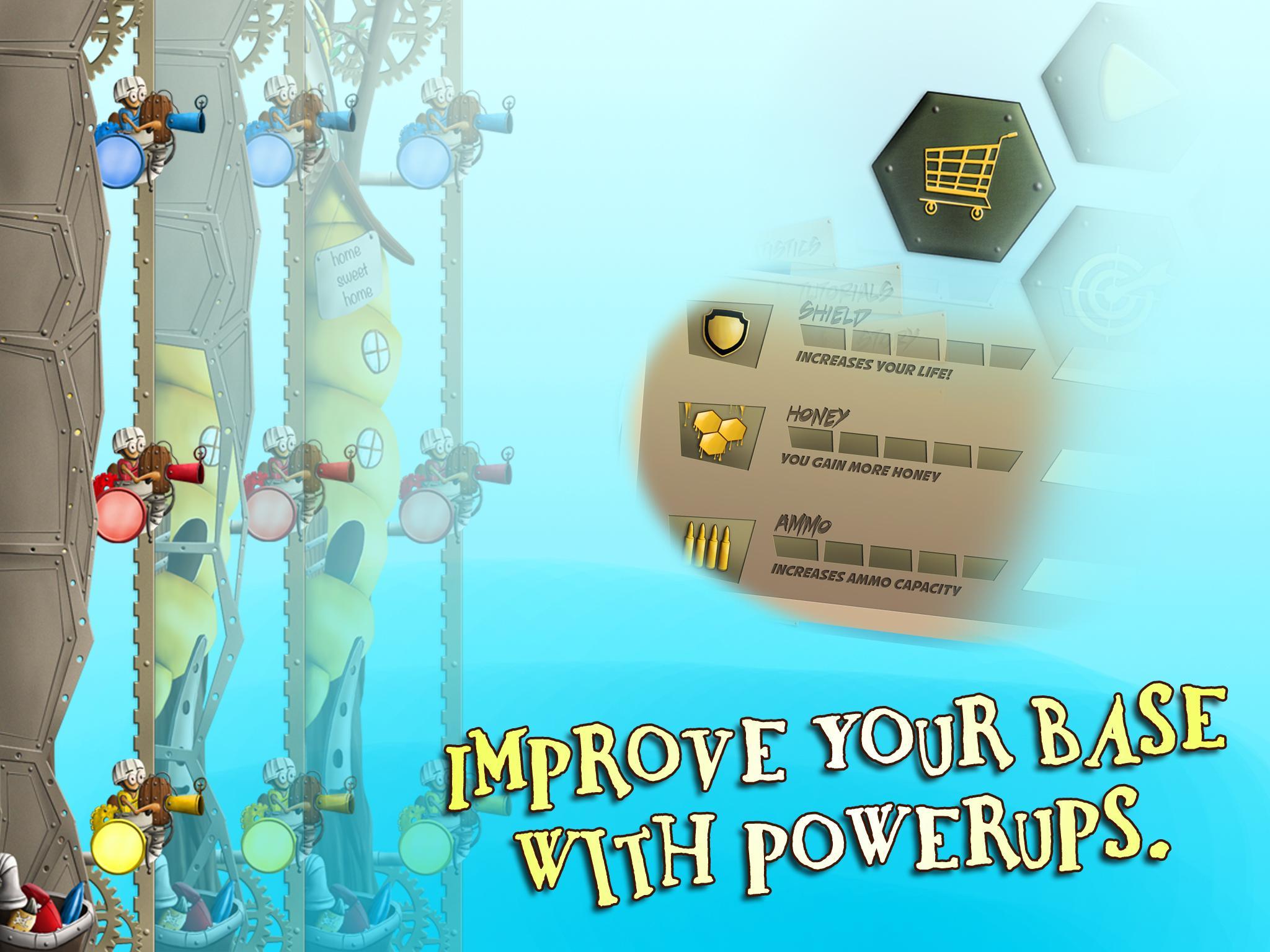 Appuyez sur les balles tirées par les abeilles soldat contre votre ruche et leur renvoyez le feu.