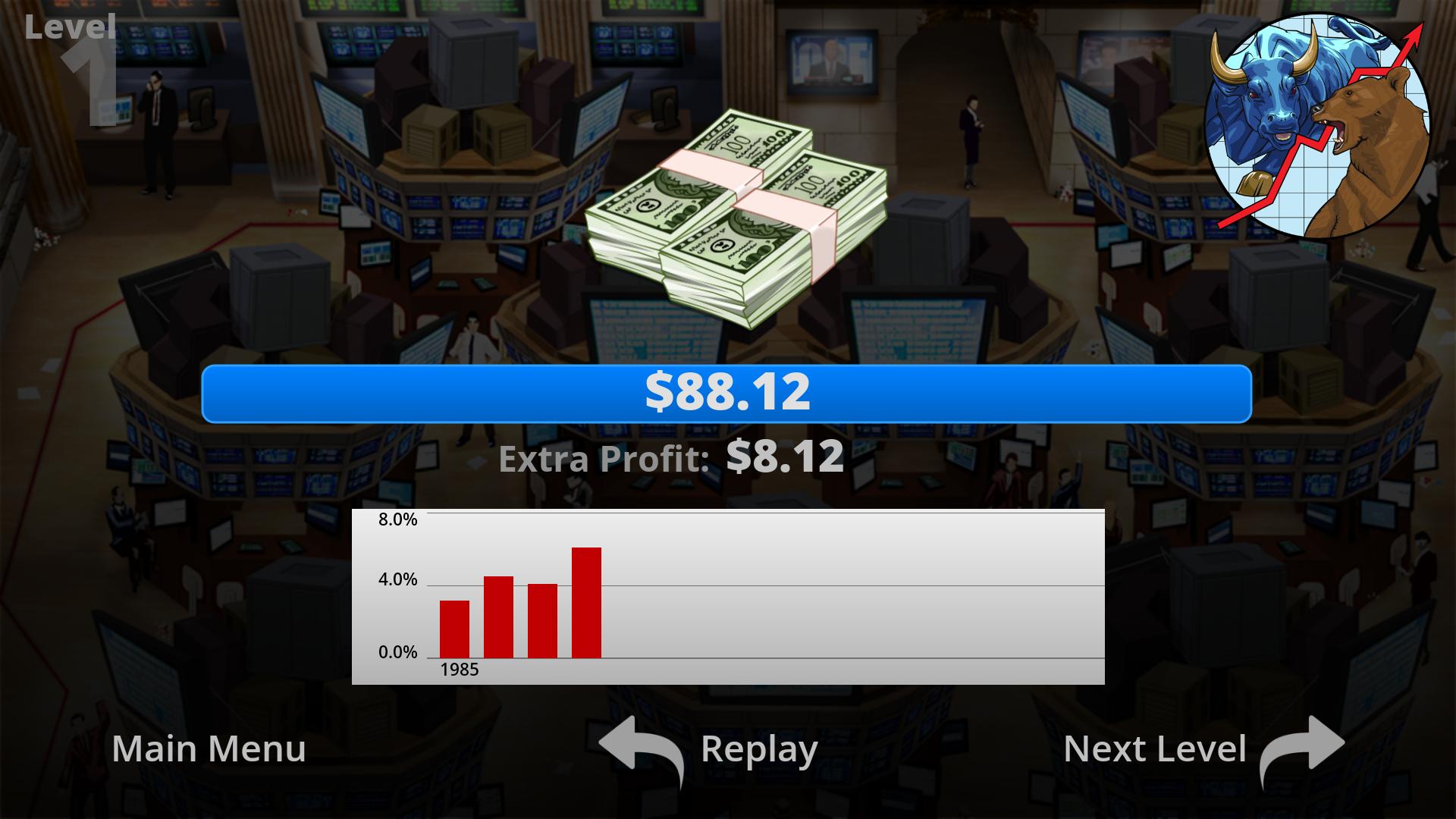 Achetez bas et vendez haut dans ce jeu boursier simulé. Commencez en tant que stagiaire et montez l'échelle de l'entreprise lorsque vous complétez les niveaux et gagnez des promotions.