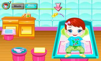 Le petit bébé pleure parce qu'il a une couche sale. Toute baby-sitter ou nouvelle maman devrait apprendre à changer une couche sale, à nettoyer le bébé et à le préparer à s'habiller. Une fois que le bébé est propre et que la couche est nouvelle, vous devez le divertir avec les jouets dans les jeux de soins pour bébé.