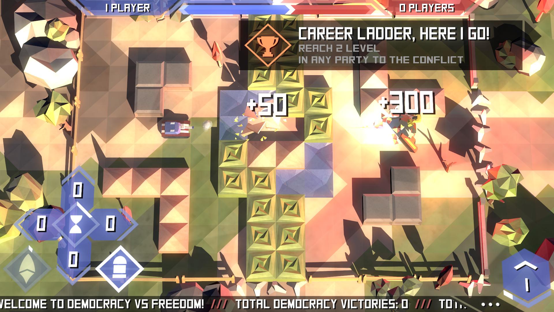 Participez à des batailles de chars vraiment massives dans Democracy vs Freedom - le premier jeu MOVA (Multiplayer Online Vote Arena). Votez pour les ordres avec des milliers de joueurs, réalisez les prix militaires les plus élevés et les rangs dans une guerre éternelle entre les forces de la démocratie et les camarades de liberté.