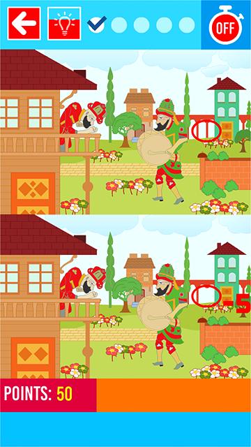 Le jeu compte 12 chapitres au total et l'objectif est de repérer les 5 différences entre les 2 images. Chaque fois que vous jouez un chapitre, les différences changent, vous pouvez donc jouer le même chapitre encore et encore. Après chaque chapitre que vous avez réussi, un autre chapitre est déverrouillé.- Le score que vous avez obtenu est enregistré à la fin des chapitres. Ainsi, vous pouvez rivaliser avec vous-même pour obtenir le score le plus élevé.