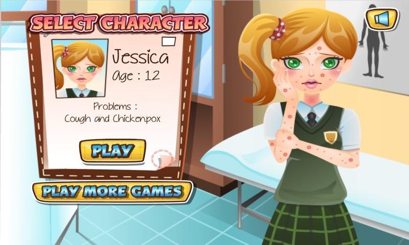 Dans le jeu Care Kids, votre infirmière, votre mission est d'aider à infirmier et à traiter le médecin de leur problème de peau.