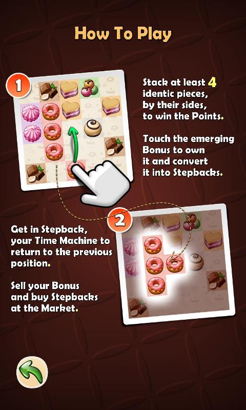 Déplacez les photos de délicieux bonbons: beignets, guimauves, bonbons et glace pour faire un match de 4 ou plus. Gagnez des points, des pièces et des bonus. Échangez-les sur le marché contre des beaux-backs. Déterminez le mode Blitz et découvrez à quel point vous pouvez faire dans une période limitée. Si vous êtes coincé et que vous n'êtes pas sûr de votre prochaine étape, activez l'option des conseils.