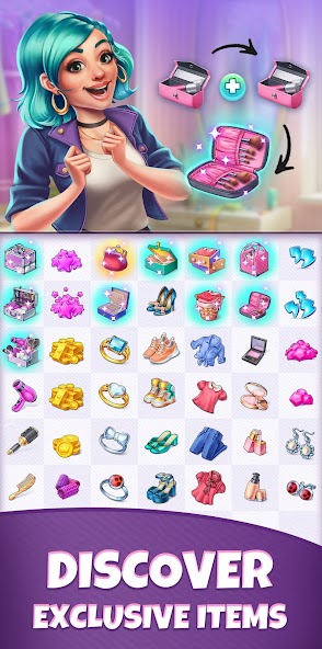 Merge Design est un jeu de fusion de puzzle décontracté, amusant et à la mode. Combinez des articles assortis du monde de la mode, puis concevez-les pour vous préparer à des événements dans votre vie glamour!