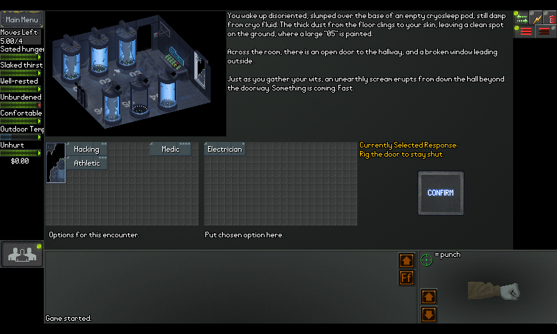 Enregistrer le système - Enregistrer les progrès entre les sessions. Cependant, si vous mourrez, c'est tout. NEO Scavenger est équilibré autour d'un seul niveau de difficulté: Permadeath. Les jeux de sauvegarde seront supprimés si vous mourez. Alors choisissez soigneusement chaque action!