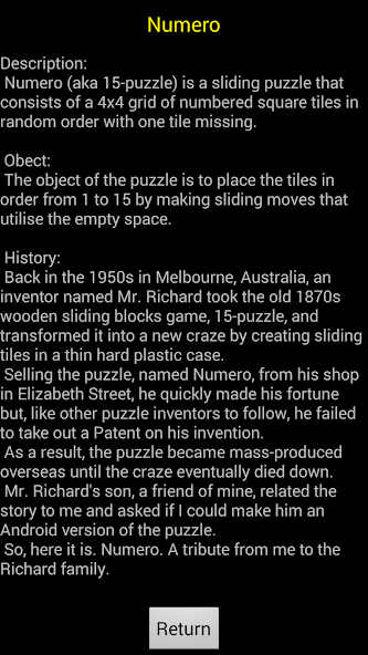 Le fils de M. Richard m'a raconté l'histoire et m'a demandé si je pouvais faire de lui une version Android du puzzle.