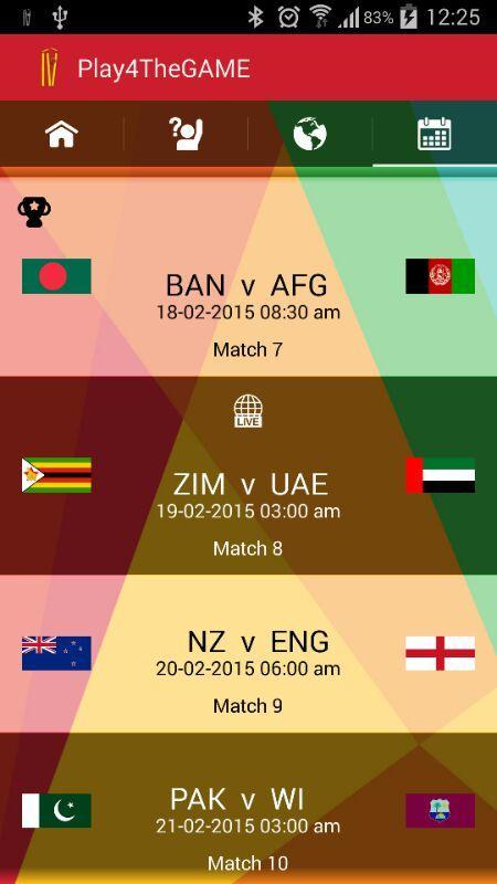 Regardez le match en direct de cricket se dérouler sur vos écrans de télévision et en même temps jouer avec le monde en devinant qui gagnera le match. Plus vos prédictions sont meilleures et plus vous jouez, plus vous avez le score et mieux votre classement mondial serait. Cela semble intéressant? Oui, vous voulez être l'homme du match ou l'homme de la série? Alors voici comment il est joué.