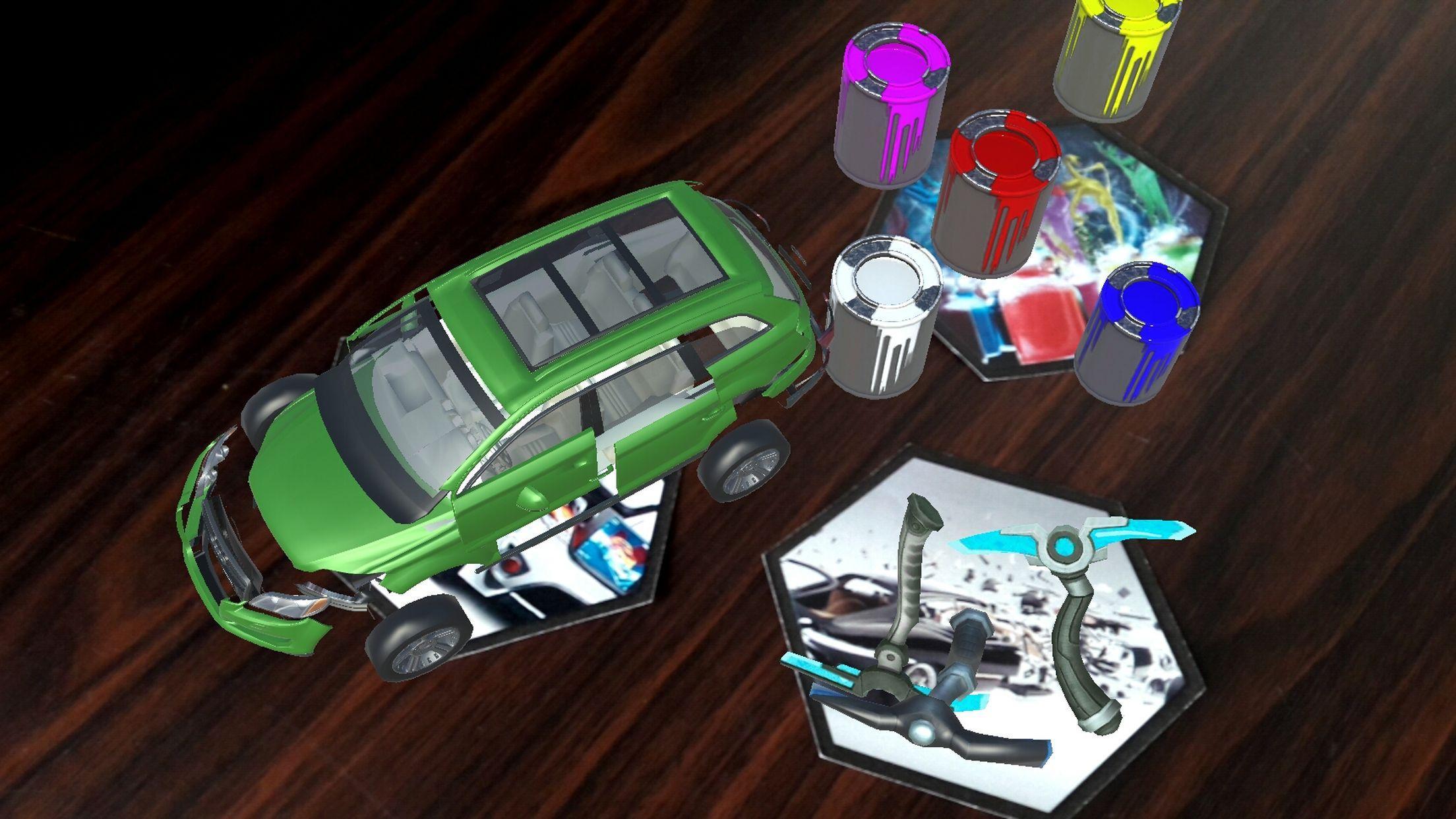 Il s'agit d'un jeu de carte de puzzle de réalité augmentée dans laquelle vous pouvez interagir avec le contenu en ajoutant des cartes supplémentaires sur la table et en pointant la caméra de votre appareil mobile. Different card colors holds different scenarios.