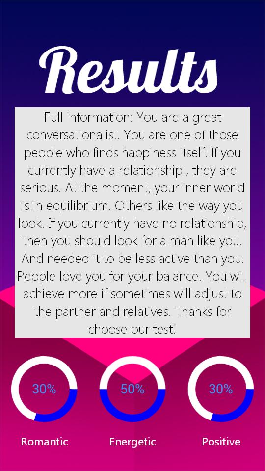 Choisissez l'une des deux images, puis le test vous indiquera des détails sur vous-même.