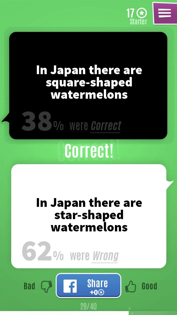 Simple Truths , un spin-off super amusant de "et si" et "ceci ou cela", est un jeu de questions où vous essayez de trouver la bonne réponse aux questions décontractées, stimulantes et folles et voyez immédiatement comment les autres joueurs ont répondu! Parfait pour les fêtes ainsi que pour le temps de passer et en bonus, vous apprendrez beaucoup de nouvelles choses que vous ne connaissiez pas déjà. Vous n'avez rien à perdre, essayez-le!