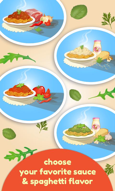 Sélectionnez le type de spaghetti dans le menu des recettes et commencez à cuisiner votre propre repas de pâtes. La casserole attend déjà que vous fassiez votre sauce préférée. Mélanger tous les ingrédients préparés et cuire lentement jusqu'à ce qu'ils deviennent doux, crémeux et délicieux. De cette façon, vous pouvez faire diverses sauces de pâtes, comme la sauce tomate, la sauce à la viande, la sauce au fromage ou la sauce au pesto. Ensuite, prenez les spaghettis de votre choix et placez-les dans un grand pot d'eau salée bouillante. Lorsqu'ils sont cuits, trottez-les dans une passoire. Versez votre sauce sur des spaghettis et ajoutez votre touche finale avec de nombreux ingrédients supplémentaires et garnitures alimentaires comme les herbes, les légumes, les saucisses, les boulettes de viande, le fromage et même les jouets.