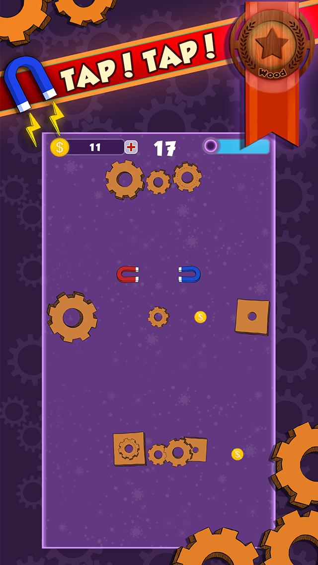 Découvrez l'aventure de Tap Tap Magnet , les aimants qui tombent à travers le monde des rouages et des roues. Appuyez sur l'écran pour repousser les aimants et éviter les obstacles.