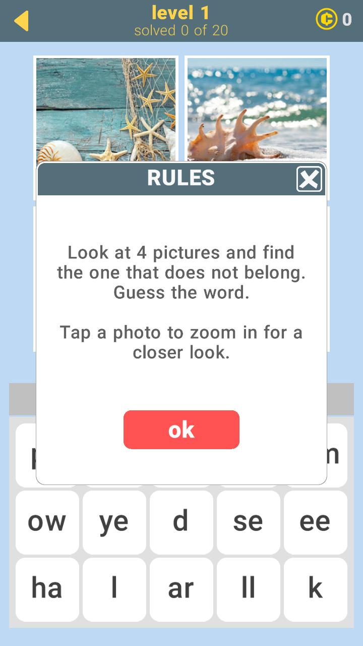 20 words per level. 400 words in the game. Can you find all of them? Sometimes you have to think beyond the obvious. Good luck!