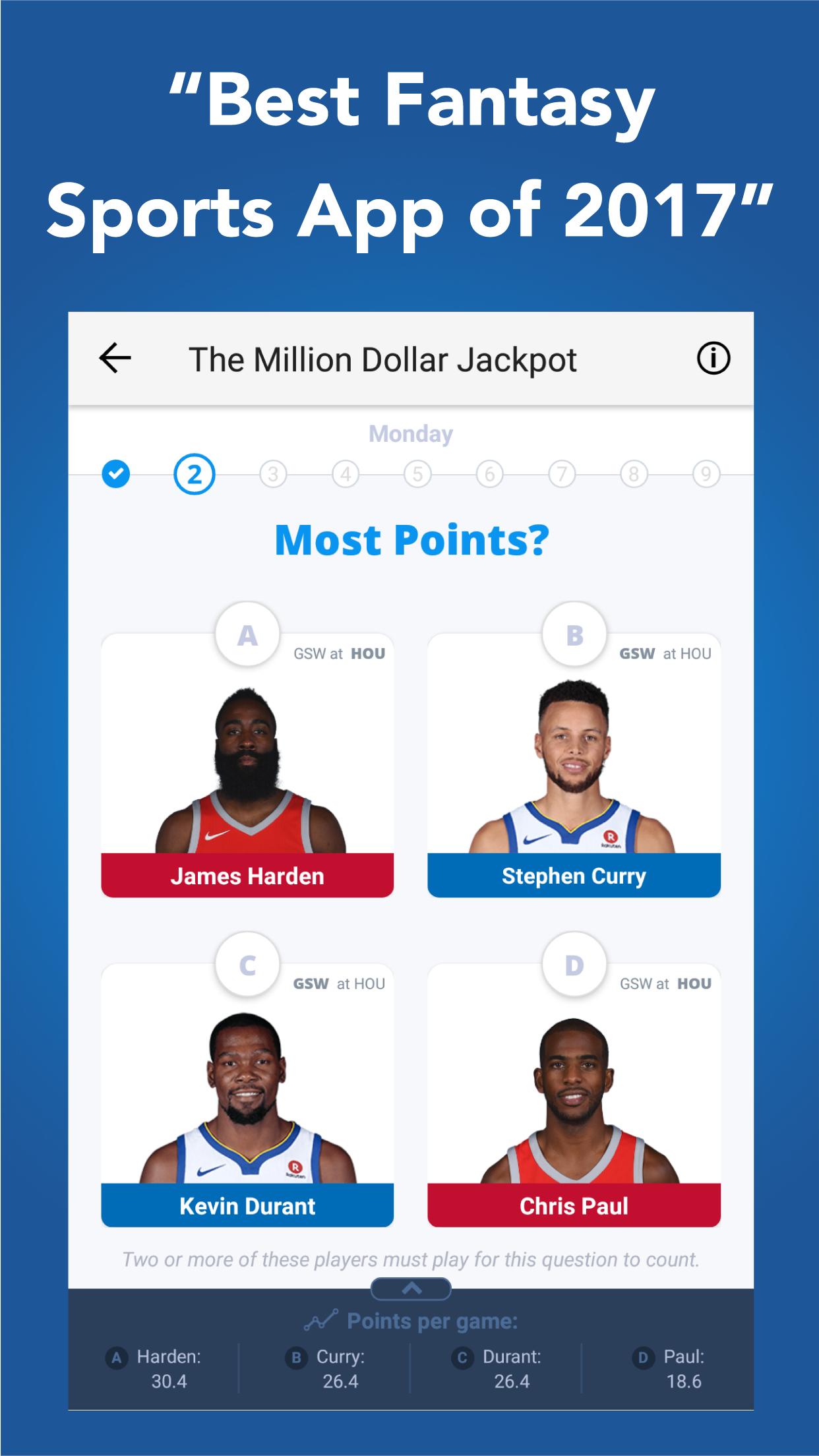 $1,000,000+ up for grabs every day. Progressive jackpots and six-figure championship events. The fastest withdrawals of any daily fantasy site. Boom was named the ‘BEST FANTASY SPORTS APP OF 2017’ in the annual eGaming Awards.