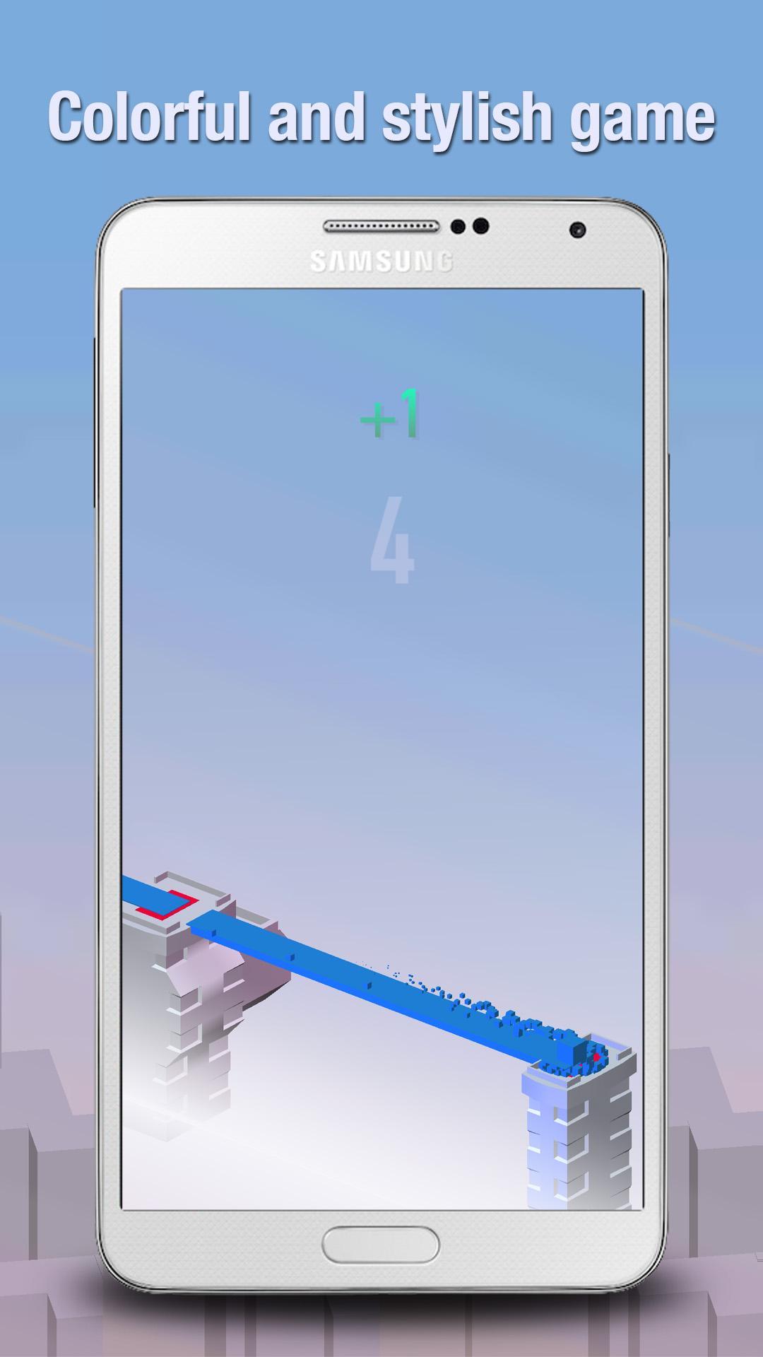 Hold your finger on screen to start build bridge. As soon as you release it, bridge will be placed. You lose If your bridge is too small or too large. challenge your friends to be a top star.