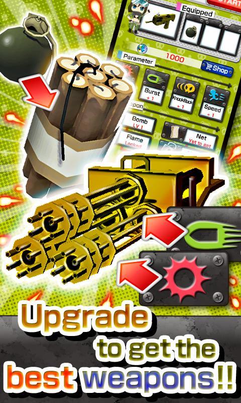 - No complicated control. Just tap and slide to move the auto firing gun transversely to attack and enjoy the game!