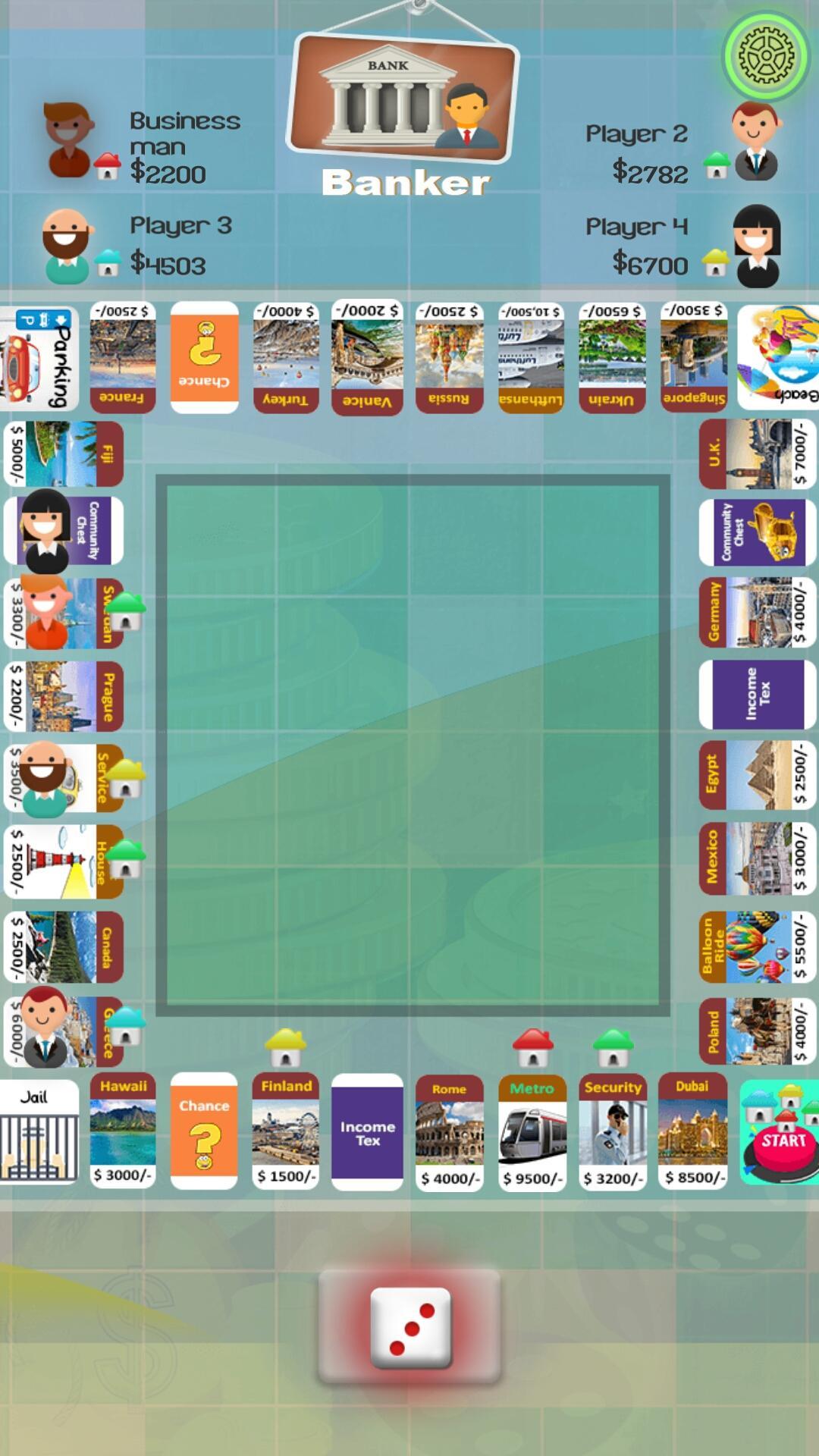 The board is designed to perfectly fit your phone or your tablet. The squares include cities and airports, motorway, ferry, casino cards, lottery cards and a jail. The player with the floor throws two dice and moves clockwise around the board. A player who lands or passes the Start square collects fund. If a player rolls doubles, they can roll in turn. After three consecutive sets of doubles, she has to go to jail.
