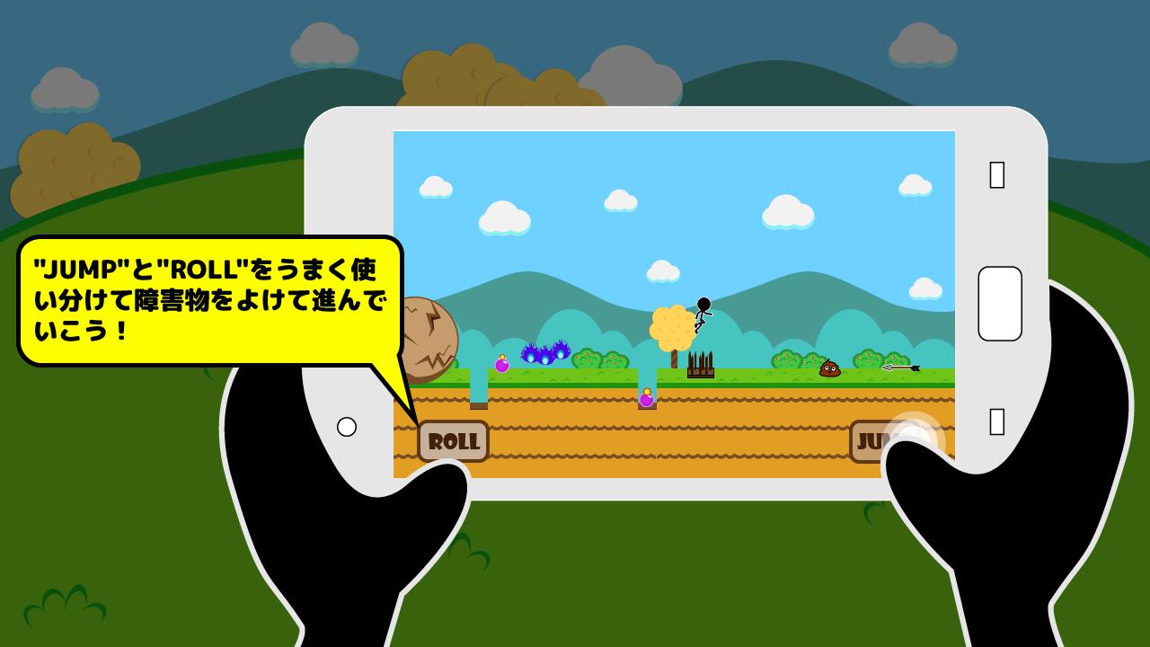 Run through the way covered with traps! Dodge traps by jumping and rolling forward!