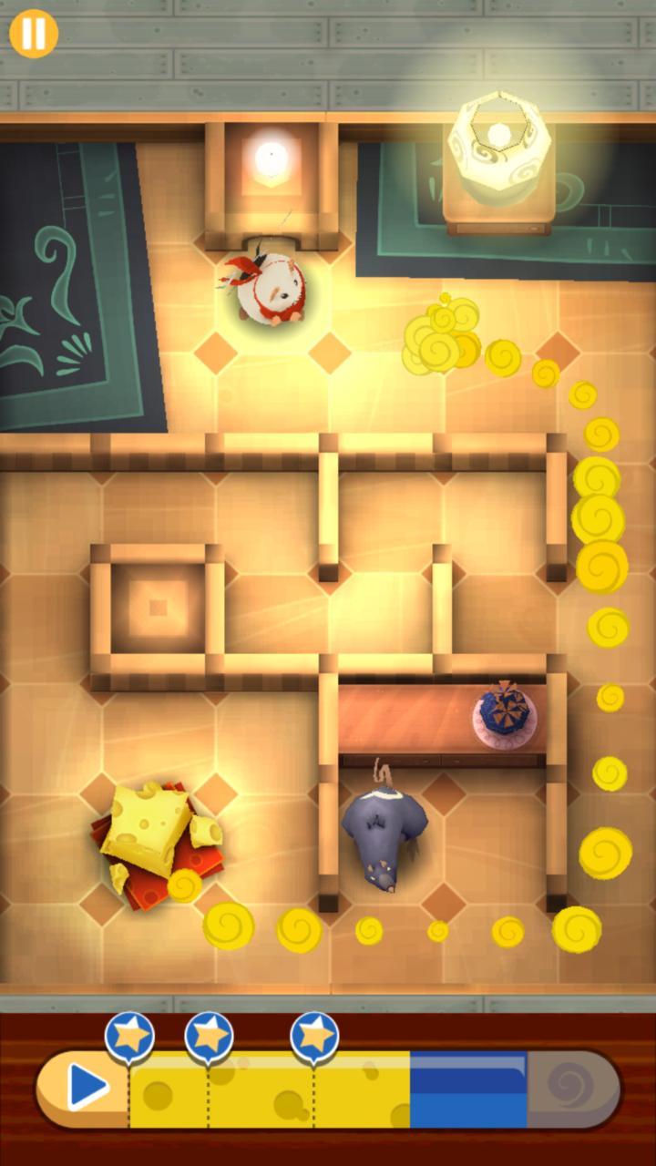 The mouse will follow the scent-trail at all costs… but watch out! The scent only goes from Cheese to Mouse, not the other way around! And keep an eye on your scent-bar: save scent to preserve the aroma and get more stars!