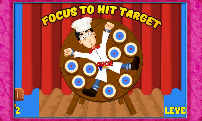 Chef is tied up on dart wheel, smash & hit the targets with ice cream