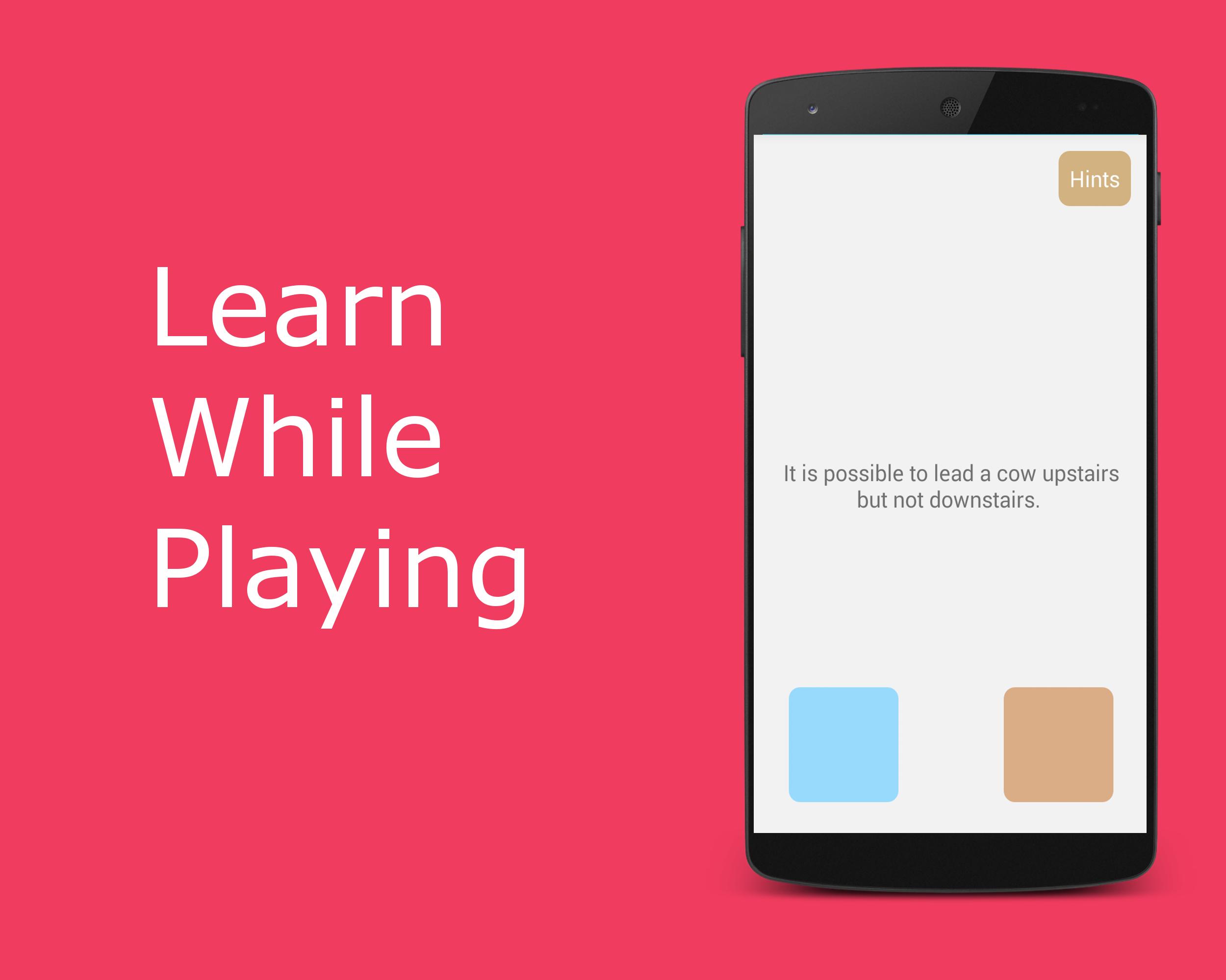 This quiz game is very easy to play and enjoyable to play , you just have to chose, if a question is true or false.