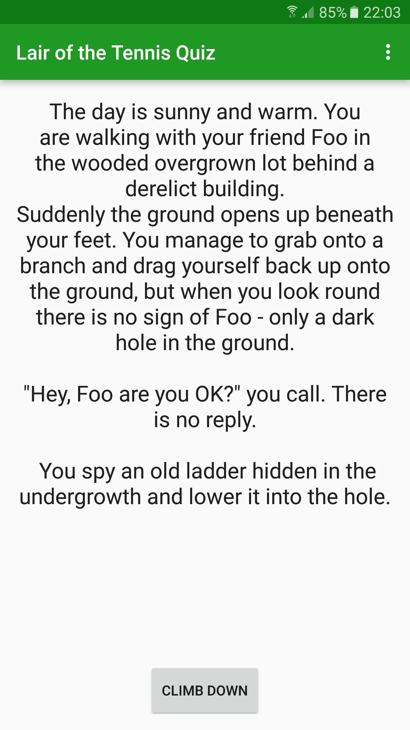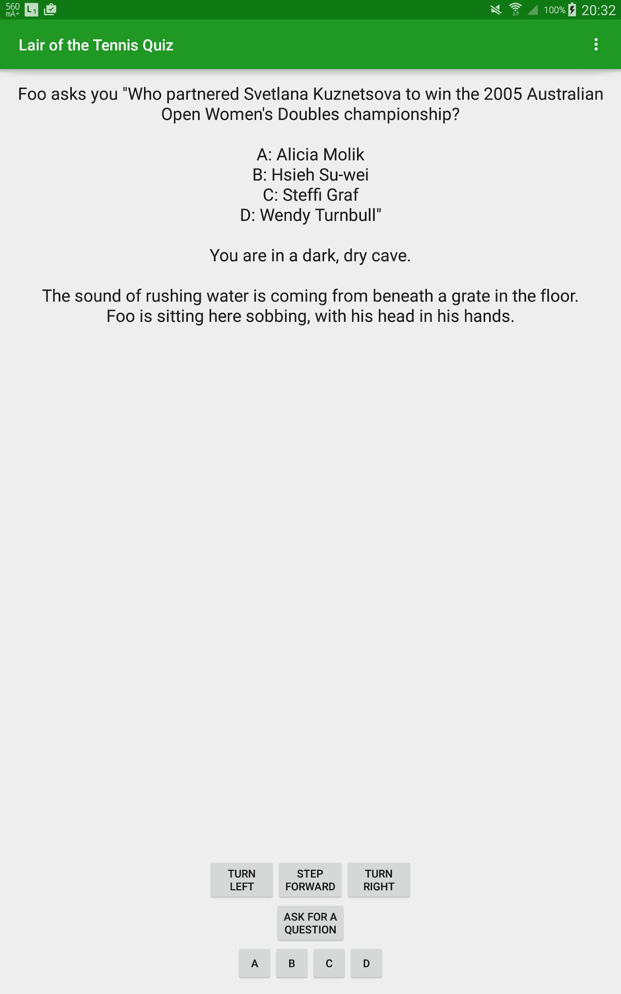 To rescue him you will need to navigate the dark caverns and answer all the tennis quiestions.