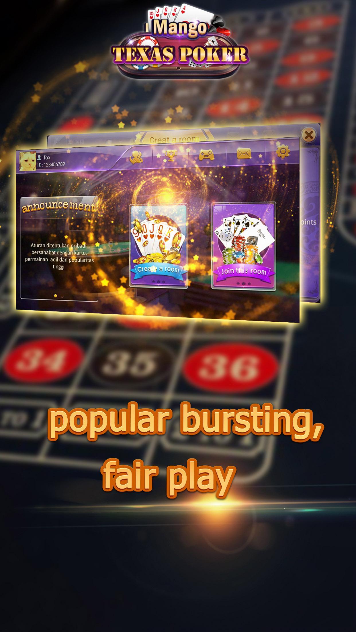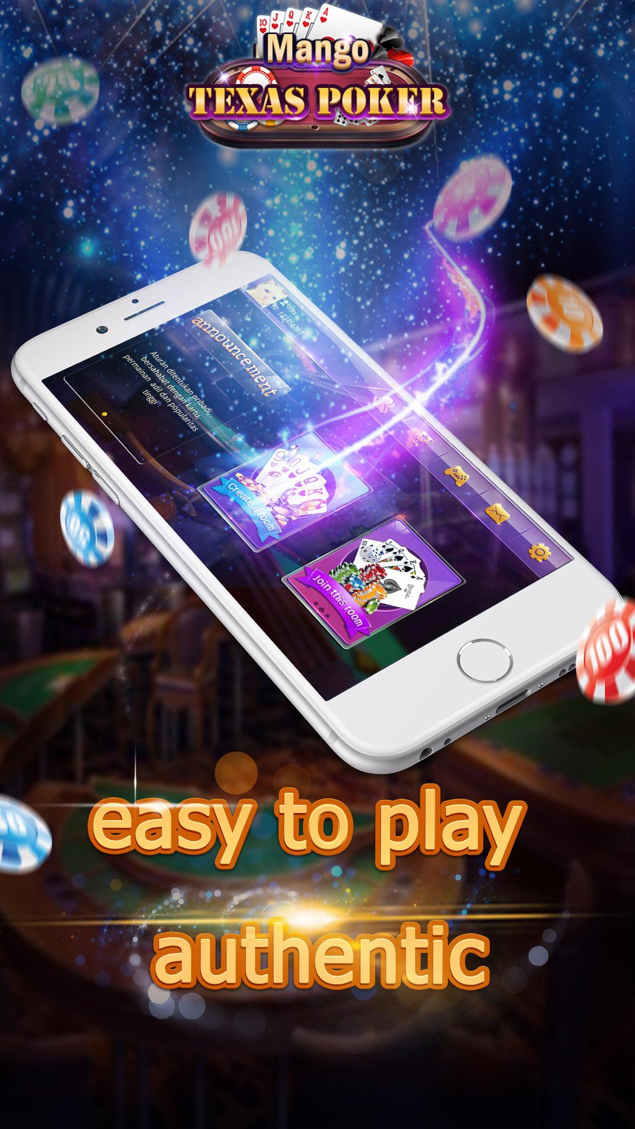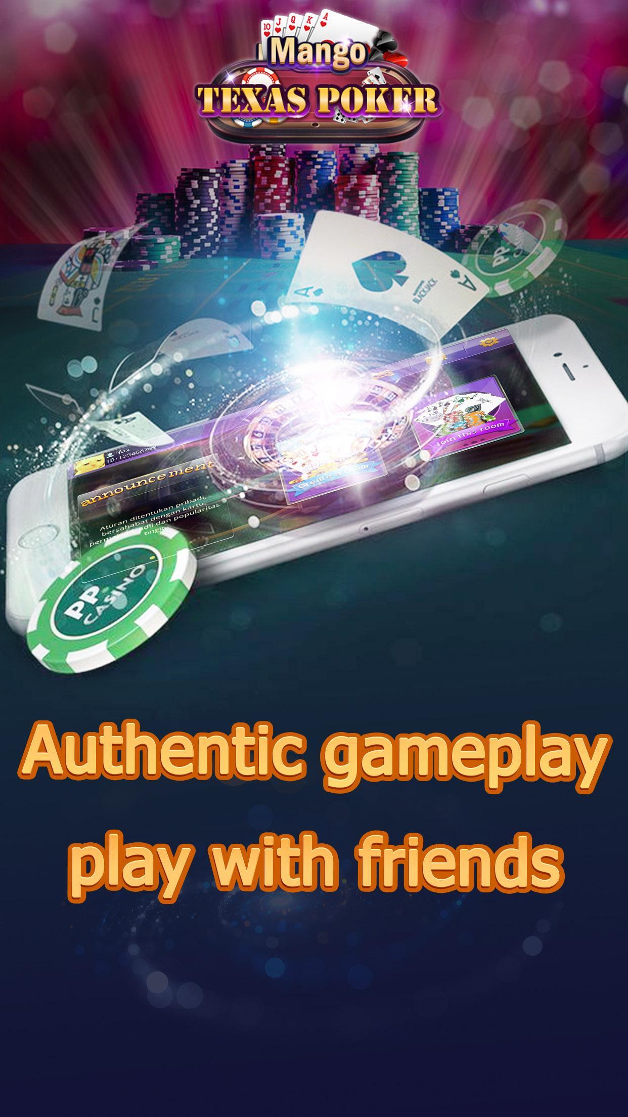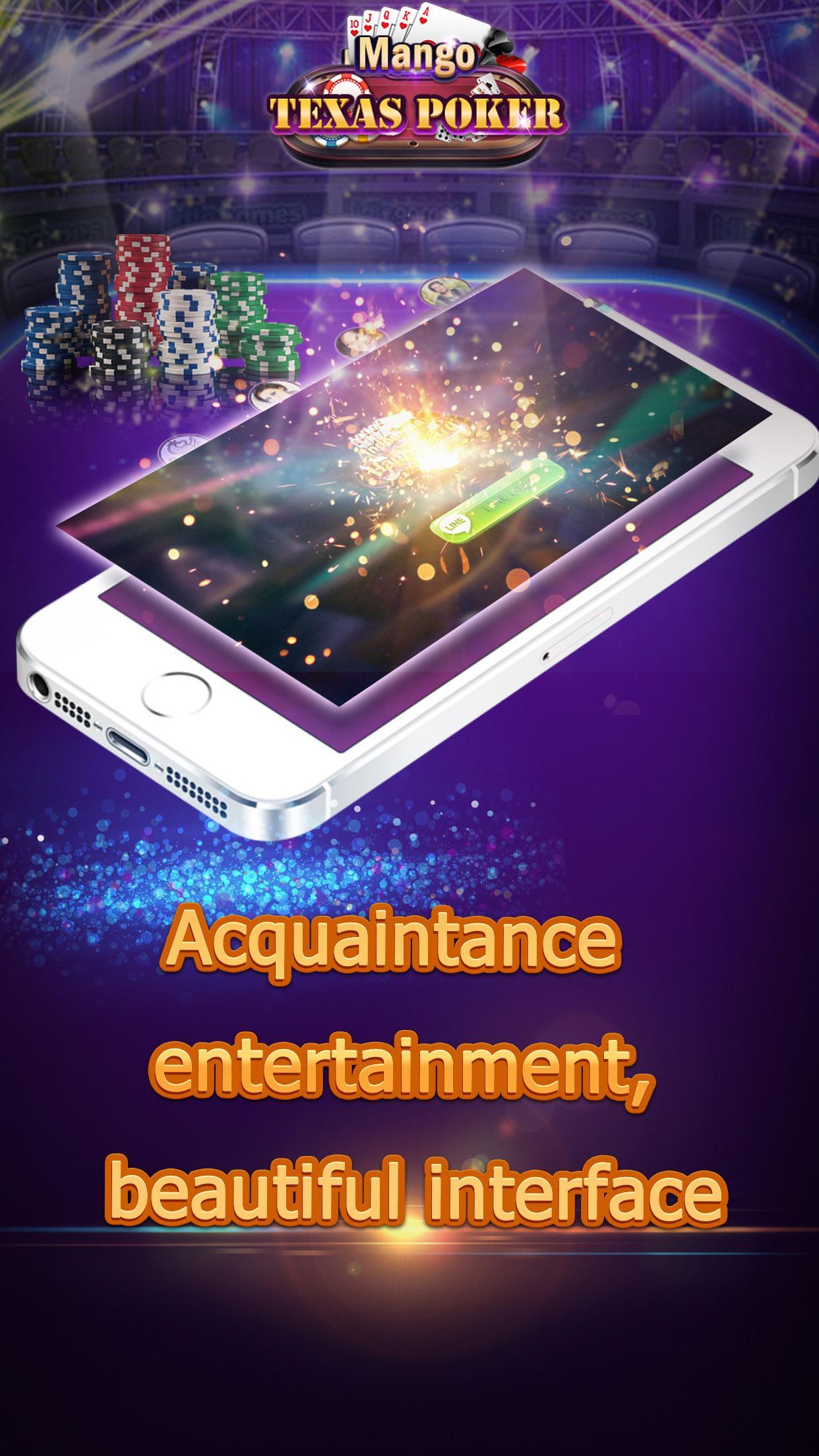 Mango Texas Poker is locally popular casual games ,based on local gameplay,support custom extension rules,it also have features of open room,do not go out and you can play with your friend.