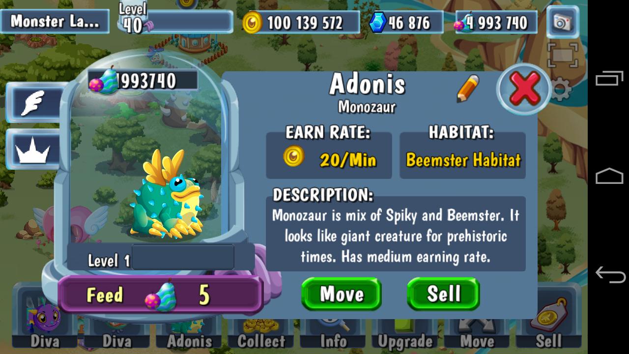You can build your own imaginary Monster Land. Build monster habitats, raise cute and funny monsters. Breed and get new weird combinations with cross-type breeding. Grow special monster food in farms and feed your monsters. Decorate your Monster Land with great decoration items. Visit and help your friends' with their lands. Optimize your economy to maximize your earnings.