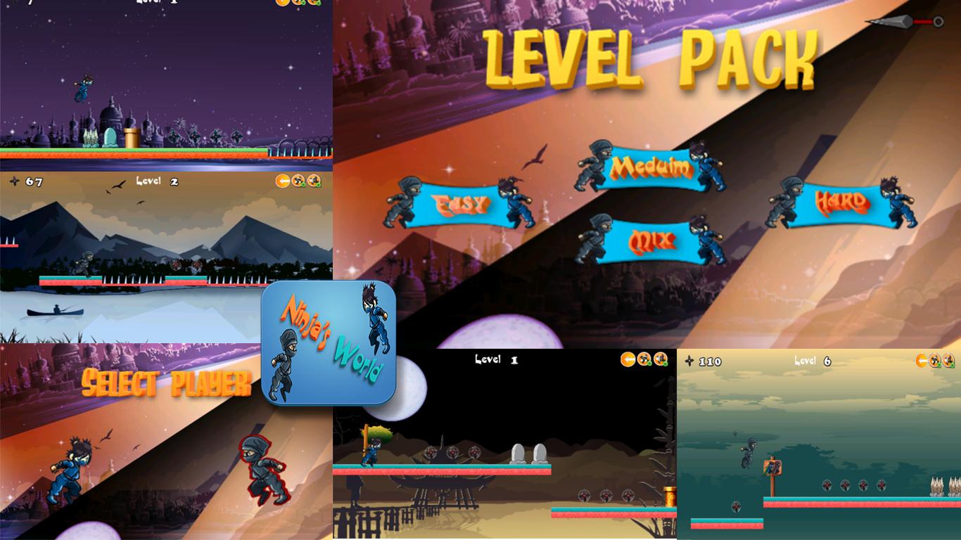 You Will spend a good and Amazing time playing,There is many charactere "girl Ninja" & "Boy Ninja" juste select your player to begin with many levels and You can Chose levels pack between Easy Medium and Hard don't forget last level "mix" .